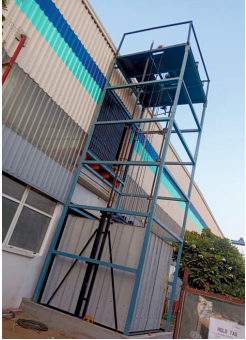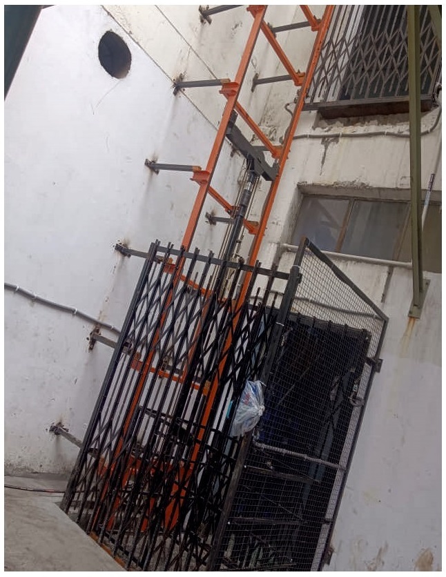 single mast hydraulic goods lift is widely used to transfer material from one floor to another.lt is to be installed with wall support at the one side and rest 3 sides can be used for loading & unloading purpose. single mast hydraulic goods lift are designed to move goods, palettes and heavy loads between two or more floors, they can also function as binlbike lifts Single Mast Goods Lift Minimum Space Required Width 150 mm Extra &depth 400 mm Extra overhead 2500 mm, pit 300 mm For Platform Levelling. Maximum Capacity 1500 Kgs & maximum Height Operated in 60 Ft.